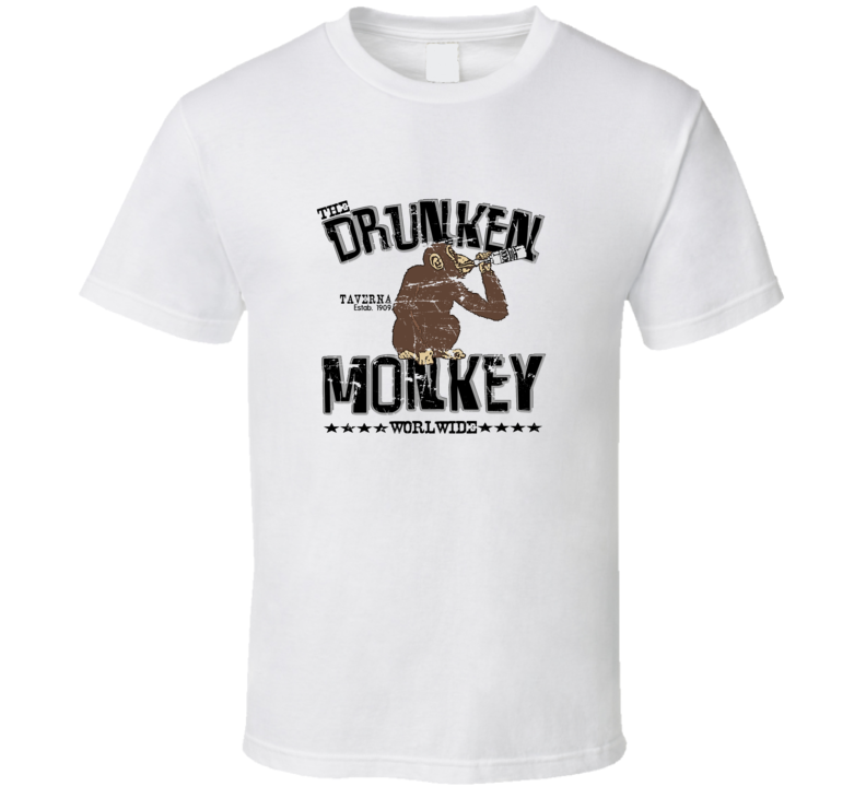 The Drunken Monkey Taverna Worldwide Bar Saloon parody funny T Shirt
