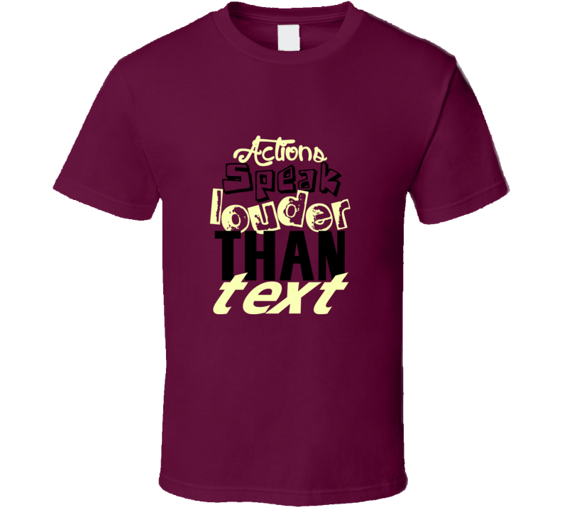 Order your very own Actions Speak LouderThan Text Funny Typography T Shirt. It won’t be around forever so buy yours here today! Shop our huge selection of high quality, graphic apparel. Each design is offered on a variety of sizes and styles including; t shirts, hoodies, aprons and even baby one-pieces! This product is pre-treated to ensure quality and longevity of the graphic.
