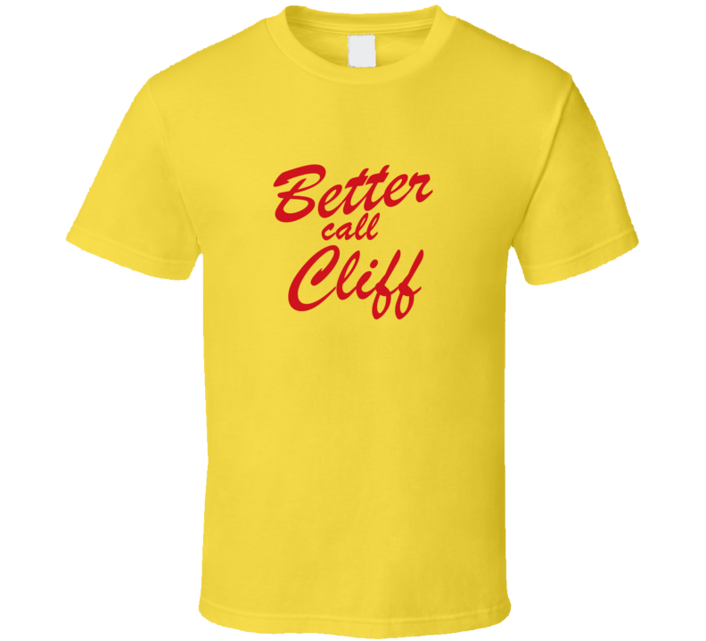 Order your very own Better Call Cliff Funny TV Lawyer T Shirt. It won’t be around forever so buy yours here today! Shop our huge selection of high quality, graphic apparel. Each design is offered on a variety of sizes and styles including; t shirts, hoodies, aprons and even baby one-pieces! This product is pre-treated to ensure quality and longevity of the graphic.
