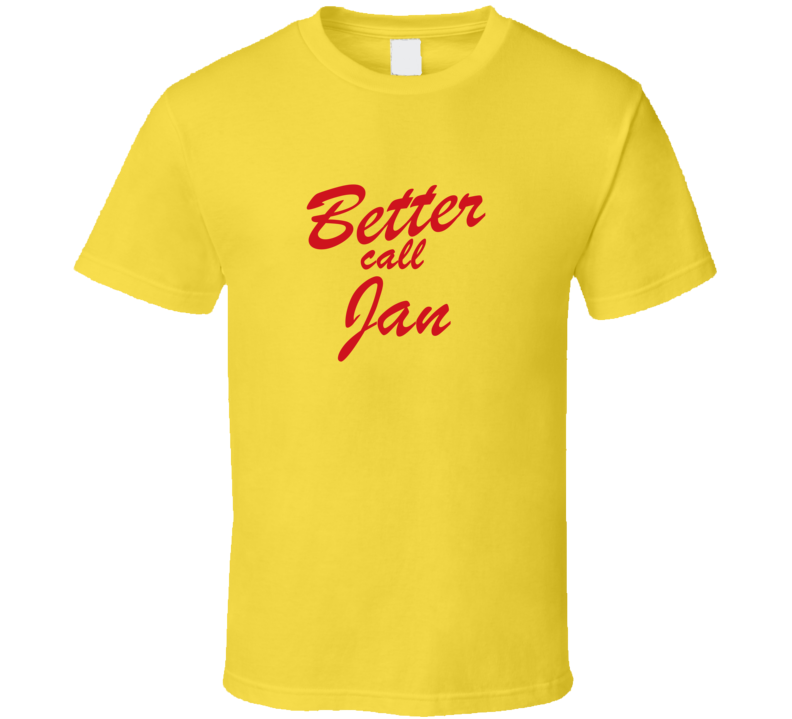 Order your very own Better Call Jan Funny TV Lawyer T Shirt. It won’t be around forever so buy yours here today! Shop our huge selection of high quality, graphic apparel. Each design is offered on a variety of sizes and styles including; t shirts, hoodies, aprons and even baby one-pieces! This product is pre-treated to ensure quality and longevity of the graphic.
