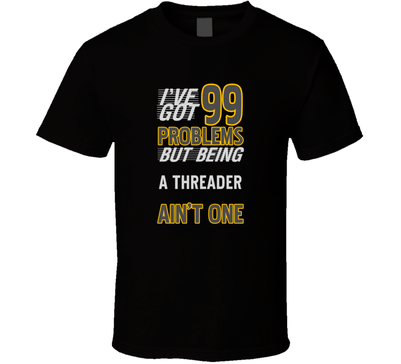 Order your very own 99 Problems But Being A Threader Aint One Funny T Shirt. It won’t be around forever so buy yours here today! Shop our huge selection of high quality, graphic apparel. Each design is offered on a variety of sizes and styles including; t shirts, hoodies, aprons and even baby one-pieces! This product is pre-treated to ensure quality and longevity of the graphic.