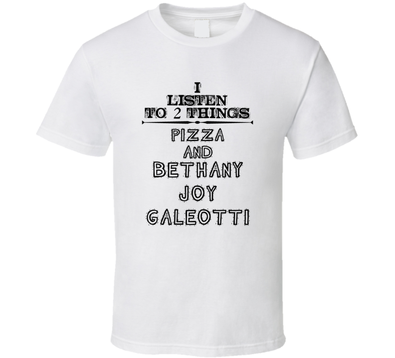 Order your very own I Listen To 2 Things Pizza And Bethany Joy Galeotti Funny T Shirt. It won’t be around forever so buy yours here today! Shop our huge selection of high quality, graphic apparel. Each design is offered on a variety of sizes and styles including; t shirts, hoodies, aprons and even baby one-pieces! This product is pre-treated to ensure quality and longevity of the graphic.
