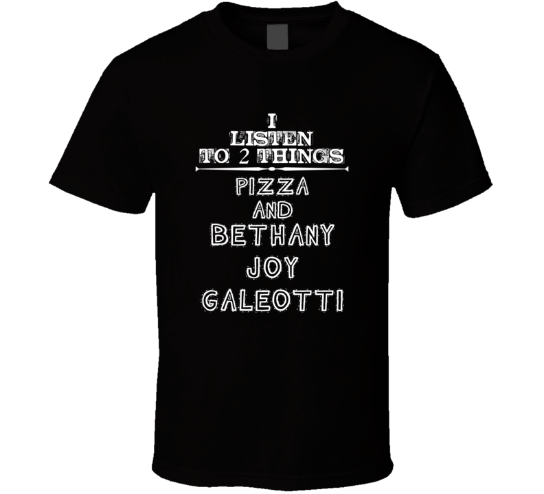 Order your very own I Listen To 2 Things Pizza And Bethany Joy Galeotti Cool T Shirt. It won’t be around forever so buy yours here today! Shop our huge selection of high quality, graphic apparel. Each design is offered on a variety of sizes and styles including; t shirts, hoodies, aprons and even baby one-pieces! This product is pre-treated to ensure quality and longevity of the graphic.