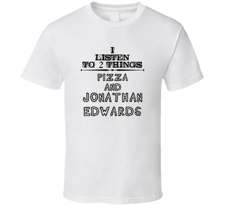 Order your very own I Listen To 2 Things Pizza And Jonathan Edwards Funny T Shirt. It won’t be around forever so buy yours here today! Shop our huge selection of high quality, graphic apparel. Each design is offered on a variety of sizes and styles including; t shirts, hoodies, aprons and even baby one-pieces! This product is pre-treated to ensure quality and longevity of the graphic.