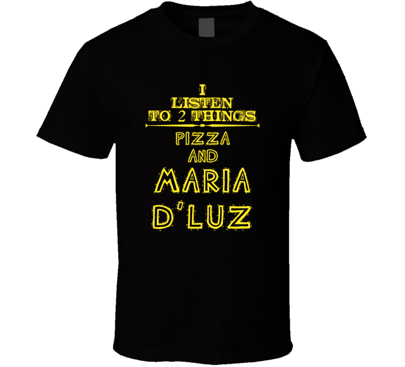 Order your very own I Listen To 2 Things Pizza And Maria D'Luz Cool T Shirt. It won’t be around forever so buy yours here today! Shop our huge selection of high quality, graphic apparel. Each design is offered on a variety of sizes and styles including; t shirts, hoodies, aprons and even baby one-pieces! This product is pre-treated to ensure quality and longevity of the graphic.