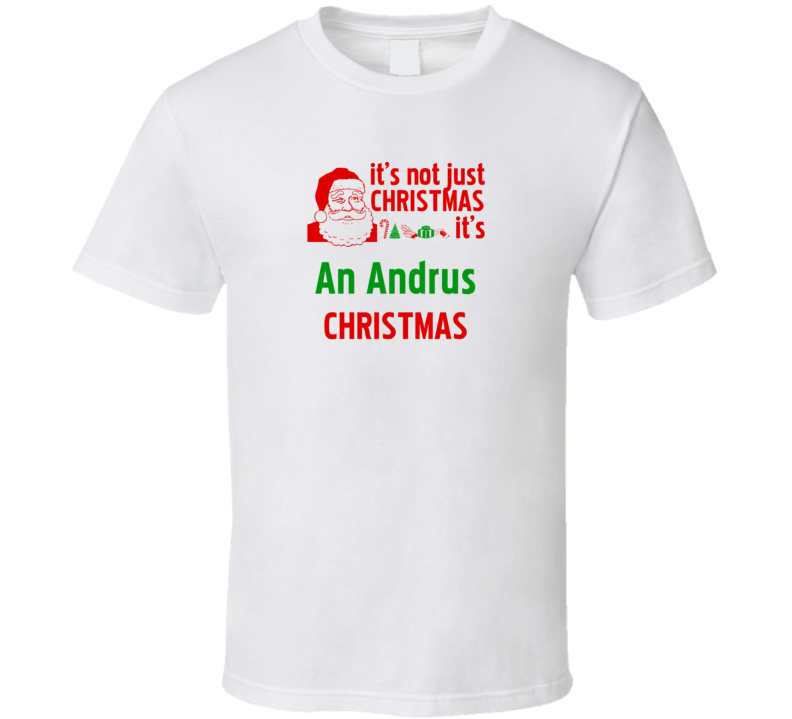 Order your very own It's An Andrus Christmas Personalized Last Name Cool T shirt. It won’t be around forever so buy yours here today! Shop our huge selection of high quality, graphic apparel. Each design is offered on a variety of sizes and styles including; t shirts, hoodies, aprons and even baby one-pieces! This product is pre-treated to ensure quality and longevity of the graphic.