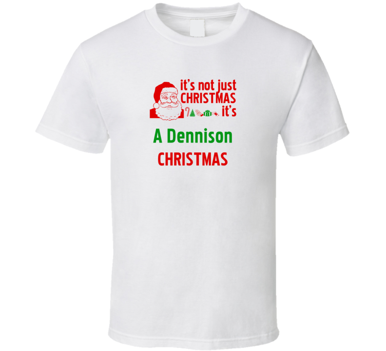 Order your very own It's A Dennison Christmas Personalized Last Name Cool T Shirt. It won’t be around forever so buy yours here today! Shop our huge selection of high quality, graphic apparel. Each design is offered on a variety of sizes and styles including; t shirts, hoodies, aprons and even baby one-pieces! This product is pre-treated to ensure quality and longevity of the graphic.