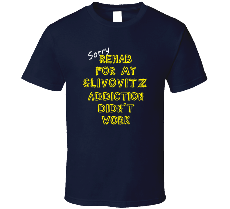 Order your very own Sorry Rehab For My Slivovitz Addiction Didn't Work Funny T Shirt. It won’t be around forever so buy yours here today! Shop our huge selection of high quality, graphic apparel. Each design is offered on a variety of sizes and styles including; t shirts, hoodies, aprons and even baby one-pieces! This product is pre-treated to ensure quality and longevity of the graphic.