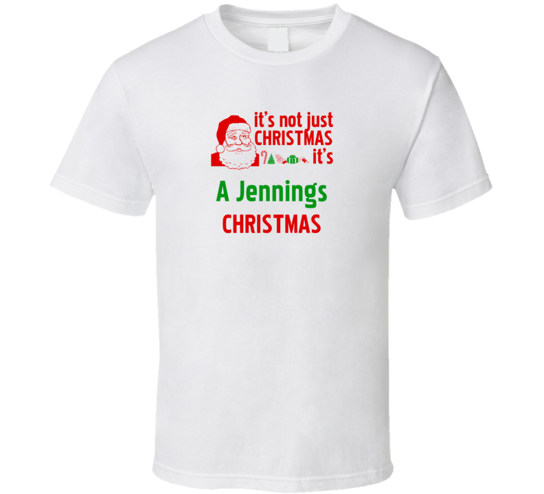Order your very own It's A Jennings Christmas Personalized Last Name Cool T Shirt. It won’t be around forever so buy yours here today! Shop our huge selection of high quality, graphic apparel. Each design is offered on a variety of sizes and styles including; t shirts, hoodies, aprons and even baby one-pieces! This product is pre-treated to ensure quality and longevity of the graphic.