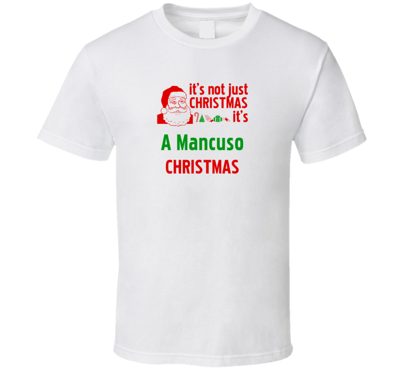 Order your very own It's A Mancuso Christmas Personalized Last Name Cool T Shirt. It won’t be around forever so buy yours here today! Shop our huge selection of high quality, graphic apparel. Each design is offered on a variety of sizes and styles including; t shirts, hoodies, aprons and even baby one-pieces! This product is pre-treated to ensure quality and longevity of the graphic.