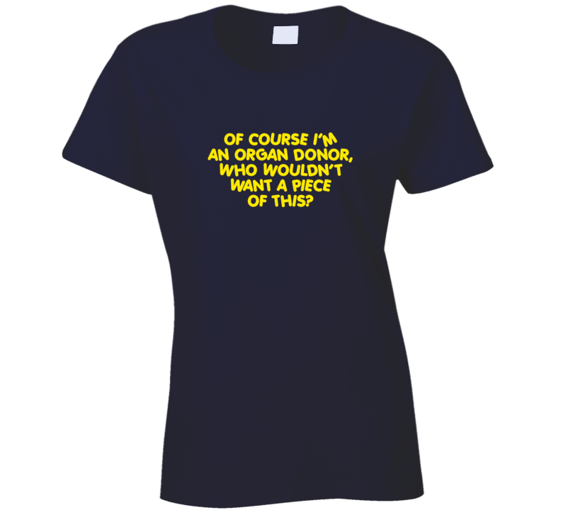 Order your very own Of Course I'm An Organ Donor Funny Sexy Cool T Shirt. It won’t be around forever so buy yours here today! Shop our huge selection of high quality, graphic apparel. Each design is offered on a variety of sizes and styles including; t shirts, hoodies, aprons and even baby one-pieces! This product is pre-treated to ensure quality and longevity of the graphic.