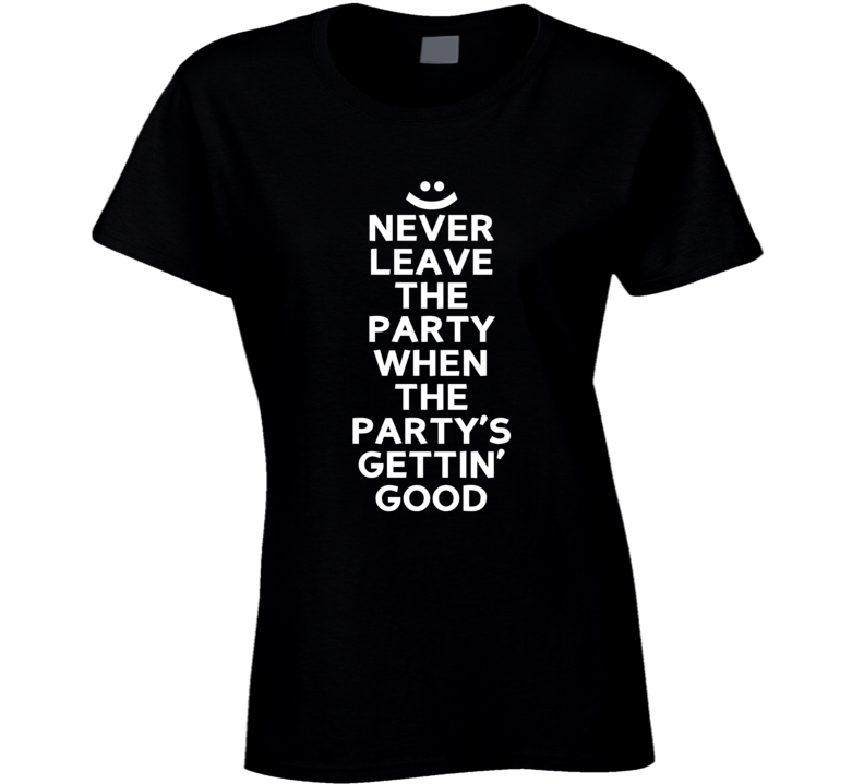 Order your very own Never Leave The Party When The Party Is Getting Good Cool T Shirt. It won’t be around forever so buy yours here today! Shop our huge selection of high quality, graphic apparel. Each design is offered on a variety of sizes and styles including; t shirts, hoodies, aprons and even baby one-pieces! This product is pre-treated to ensure quality and longevity of the graphic.