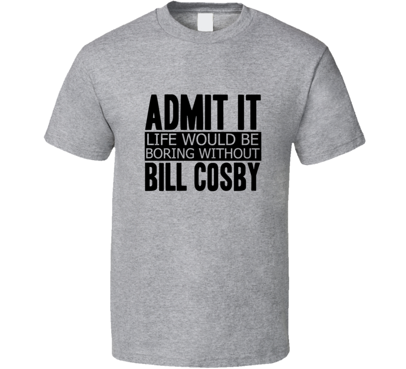 Order your very own Admit It Life Would Be Boring Without Bill Cosby Cool Funny T Shirt. It won’t be around forever so buy yours here today! Shop our huge selection of high quality, graphic apparel. Each design is offered on a variety of sizes and styles including; t shirts, hoodies, aprons and even baby one-pieces! This product is pre-treated to ensure quality and longevity of the graphic.
