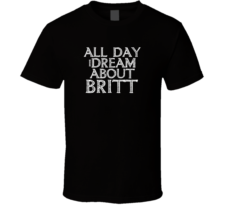 Order your very own All Day I Dream About Britt Funny Cool T Shirt. It won’t be around forever so buy yours here today! Shop our huge selection of high quality, graphic apparel. Each design is offered on a variety of sizes and styles including; t shirts, hoodies, aprons and even baby one-pieces! This product is pre-treated to ensure quality and longevity of the graphic.