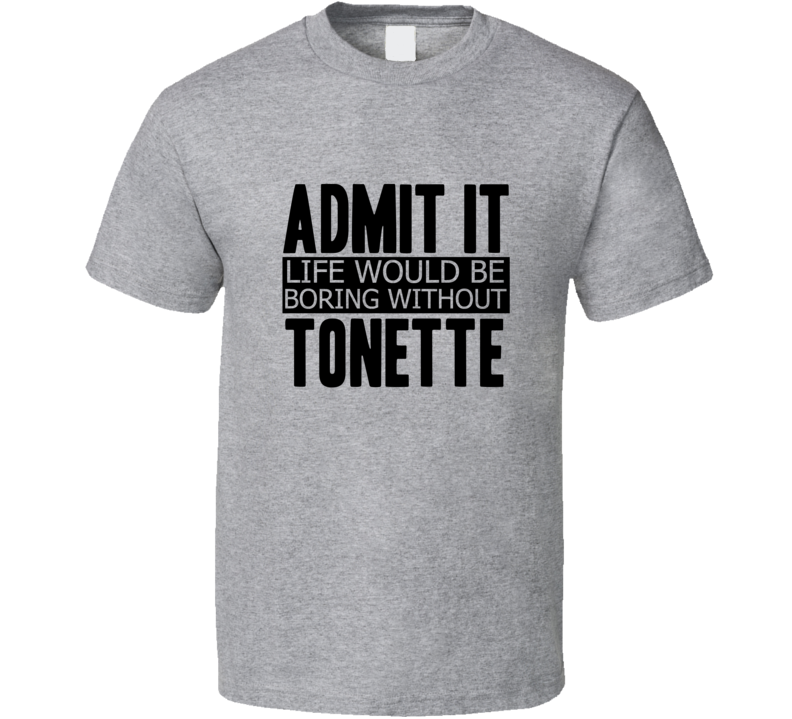 Order your very own Admit It Life Would Be Boring Without Tonette Cool Funny T Shirt. It won’t be around forever so buy yours here today! Shop our huge selection of high quality, graphic apparel. Each design is offered on a variety of sizes and styles including; t shirts, hoodies, aprons and even baby one-pieces! This product is pre-treated to ensure quality and longevity of the graphic.