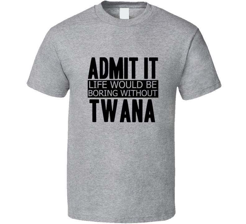 Order your very own Admit It Life Would Be Boring Without Twana Cool Funny T Shirt. It won’t be around forever so buy yours here today! Shop our huge selection of high quality, graphic apparel. Each design is offered on a variety of sizes and styles including; t shirts, hoodies, aprons and even baby one-pieces! This product is pre-treated to ensure quality and longevity of the graphic.