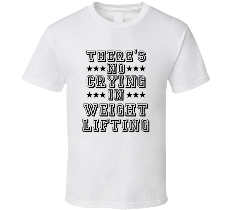 Order your very own Theres No Crying In Weight Lifting Funny Hobbies Sports Recreation T Shirt. It won’t be around forever so buy yours here today! Shop our huge selection of high quality, graphic apparel. Each design is offered on a variety of sizes and styles including; t shirts, hoodies, aprons and even baby one-pieces! This product is pre-treated to ensure quality and longevity of the graphic.