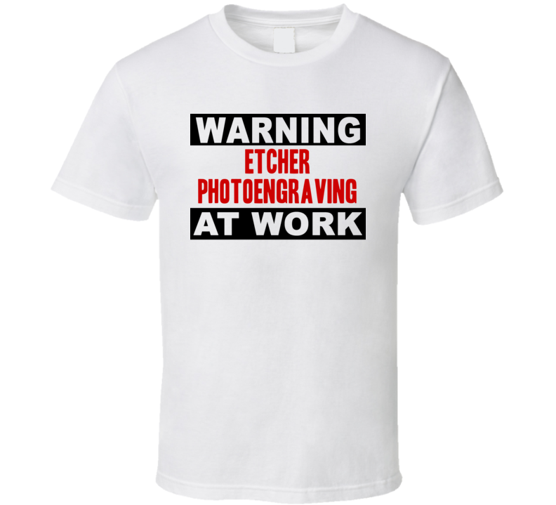 Warning Etcher Photoengraving At Work Funny Cool Occupation t Shirt