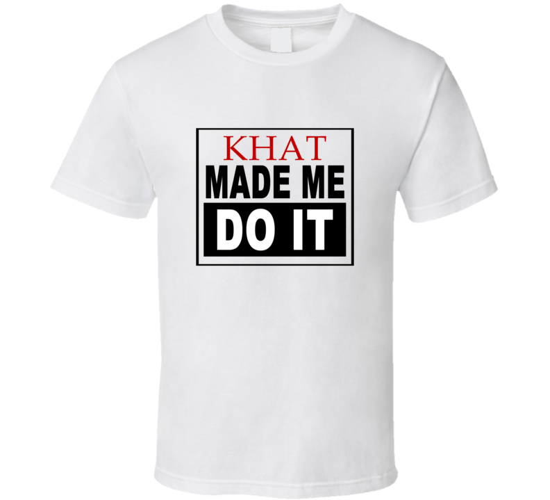 Order your very own Khat Made Me Do It Cool Retro T Shirt. It won’t be around forever so buy yours here today! Shop our huge selection of high quality, graphic apparel. Each design is offered on a variety of sizes and styles including; t shirts, hoodies, aprons and even baby one-pieces! This product is pre-treated to ensure quality and longevity of the graphic.