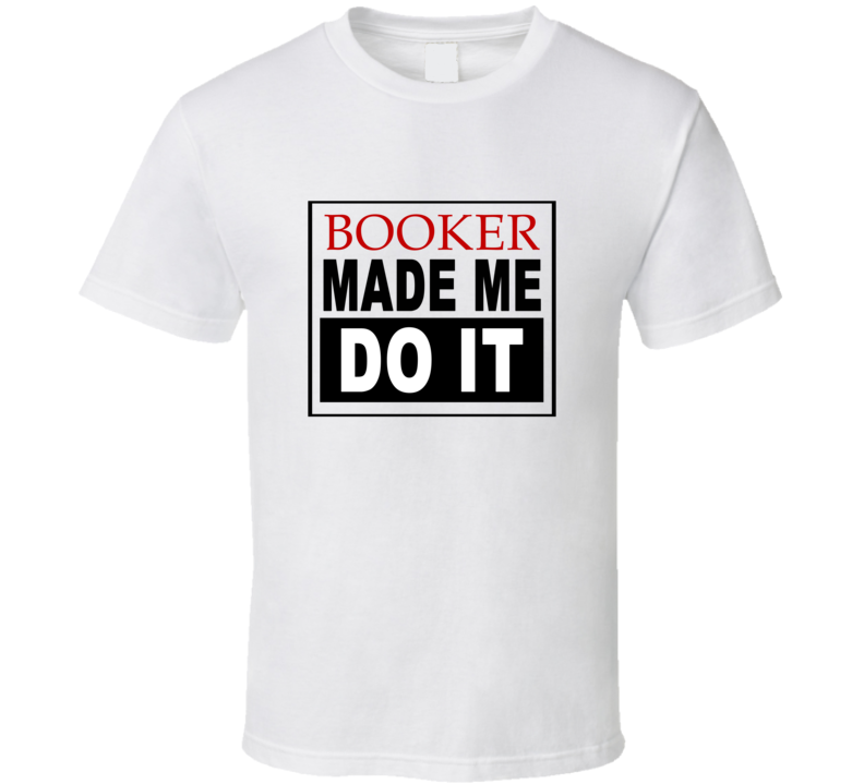 Order your very own Booker Made Me Do It Cool Retro T Shirt. It won’t be around forever so buy yours here today! Shop our huge selection of high quality, graphic apparel. Each design is offered on a variety of sizes and styles including; t shirts, hoodies, aprons and even baby one-pieces! This product is pre-treated to ensure quality and longevity of the graphic.