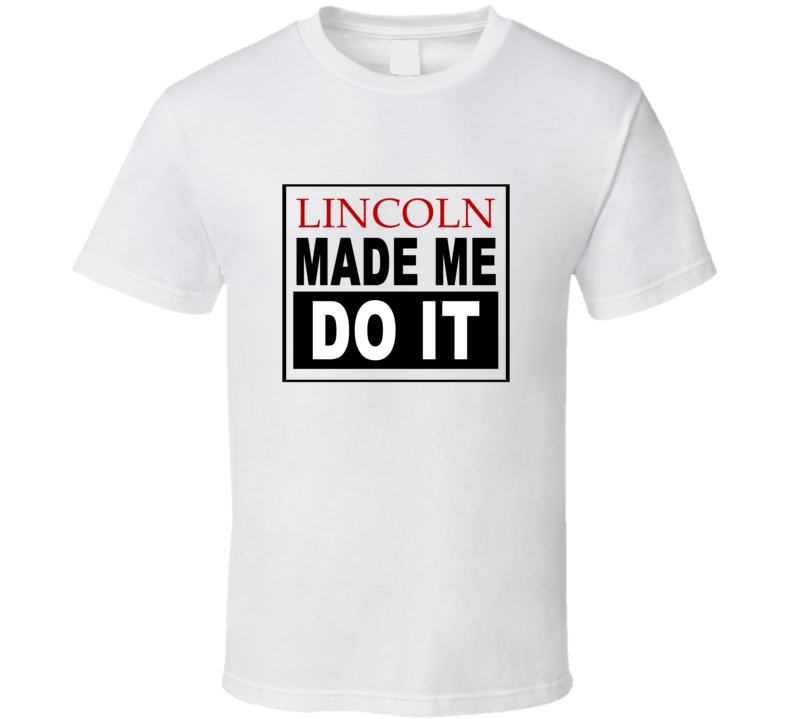 Order your very own Lincoln Made Me Do It Cool Retro T Shirt. It won’t be around forever so buy yours here today! Shop our huge selection of high quality, graphic apparel. Each design is offered on a variety of sizes and styles including; t shirts, hoodies, aprons and even baby one-pieces! This product is pre-treated to ensure quality and longevity of the graphic.