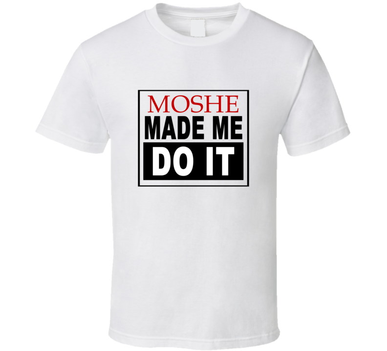 Order your very own Moshe Made Me Do It Cool Retro T Shirt. It won’t be around forever so buy yours here today! Shop our huge selection of high quality, graphic apparel. Each design is offered on a variety of sizes and styles including; t shirts, hoodies, aprons and even baby one-pieces! This product is pre-treated to ensure quality and longevity of the graphic.