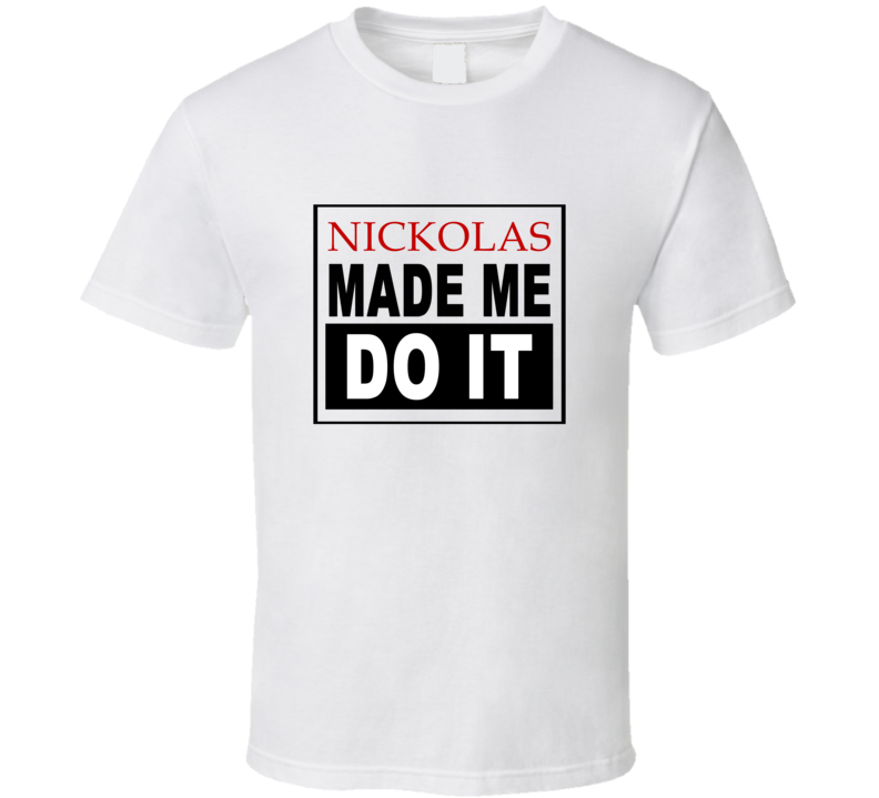 Order your very own Nickolas Made Me Do It Cool Retro T Shirt. It won’t be around forever so buy yours here today! Shop our huge selection of high quality, graphic apparel. Each design is offered on a variety of sizes and styles including; t shirts, hoodies, aprons and even baby one-pieces! This product is pre-treated to ensure quality and longevity of the graphic.