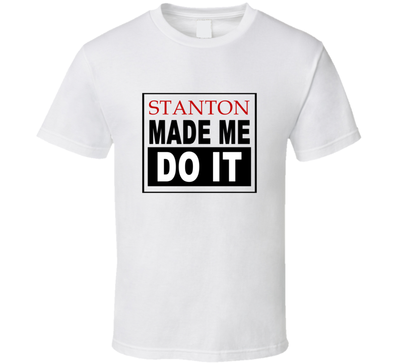 Order your very own Stanton Made Me Do It Cool Retro T Shirt. It won’t be around forever so buy yours here today! Shop our huge selection of high quality, graphic apparel. Each design is offered on a variety of sizes and styles including; t shirts, hoodies, aprons and even baby one-pieces! This product is pre-treated to ensure quality and longevity of the graphic.