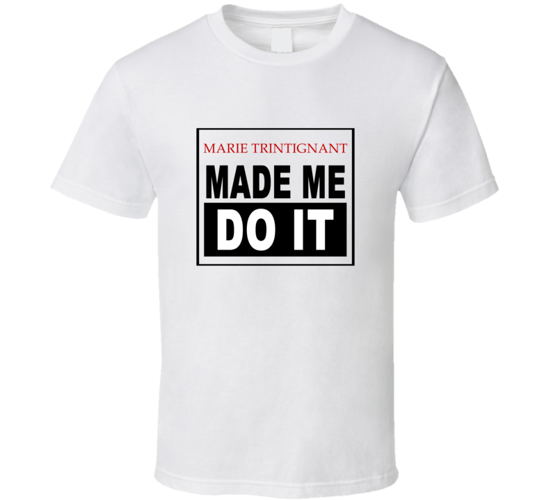Order your very own Marie Trintignant Made Me Do It Cool Retro T Shirt. It won’t be around forever so buy yours here today! Shop our huge selection of high quality, graphic apparel. Each design is offered on a variety of sizes and styles including; t shirts, hoodies, aprons and even baby one-pieces! This product is pre-treated to ensure quality and longevity of the graphic.