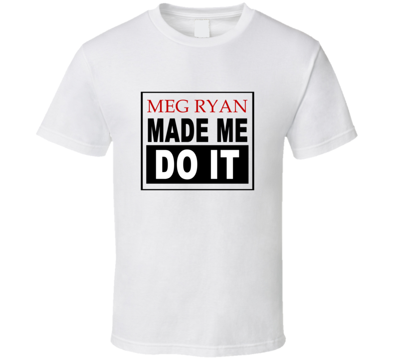 Order your very own Meg Ryan Made Me Do It Cool Retro T Shirt. It won’t be around forever so buy yours here today! Shop our huge selection of high quality, graphic apparel. Each design is offered on a variety of sizes and styles including; t shirts, hoodies, aprons and even baby one-pieces! This product is pre-treated to ensure quality and longevity of the graphic.