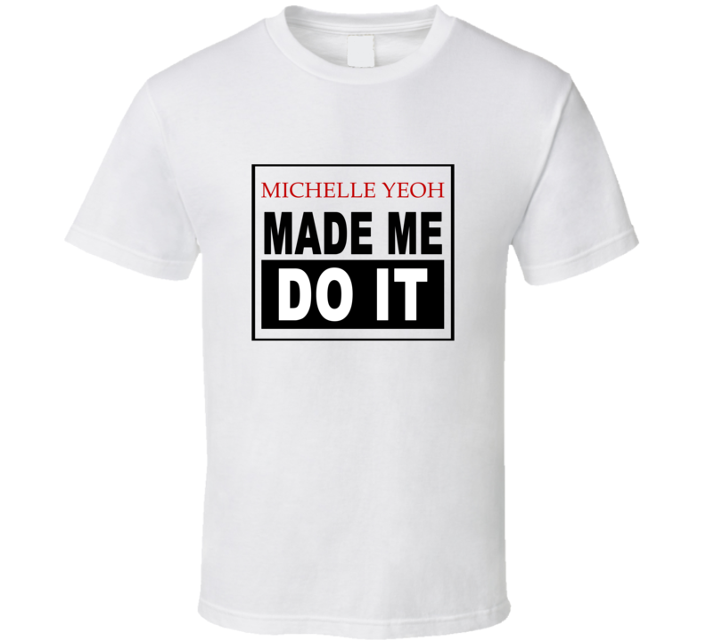 Order your very own Michelle Yeoh Made Me Do It Cool Retro T Shirt. It won’t be around forever so buy yours here today! Shop our huge selection of high quality, graphic apparel. Each design is offered on a variety of sizes and styles including; t shirts, hoodies, aprons and even baby one-pieces! This product is pre-treated to ensure quality and longevity of the graphic.