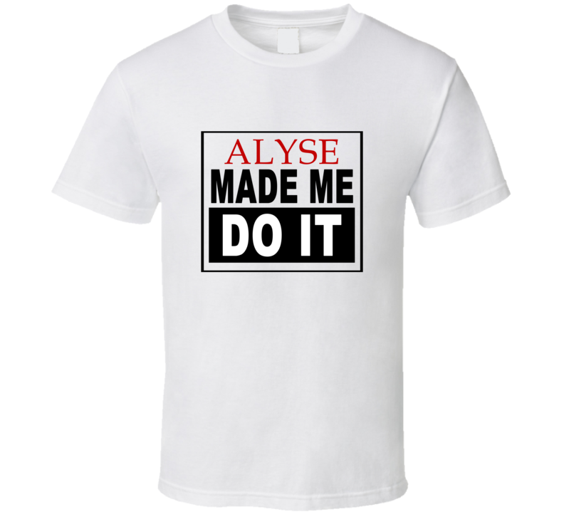 Order your very own Alyse Made Me Do It Cool Retro T Shirt. It won’t be around forever so buy yours here today! Shop our huge selection of high quality, graphic apparel. Each design is offered on a variety of sizes and styles including; t shirts, hoodies, aprons and even baby one-pieces! This product is pre-treated to ensure quality and longevity of the graphic.