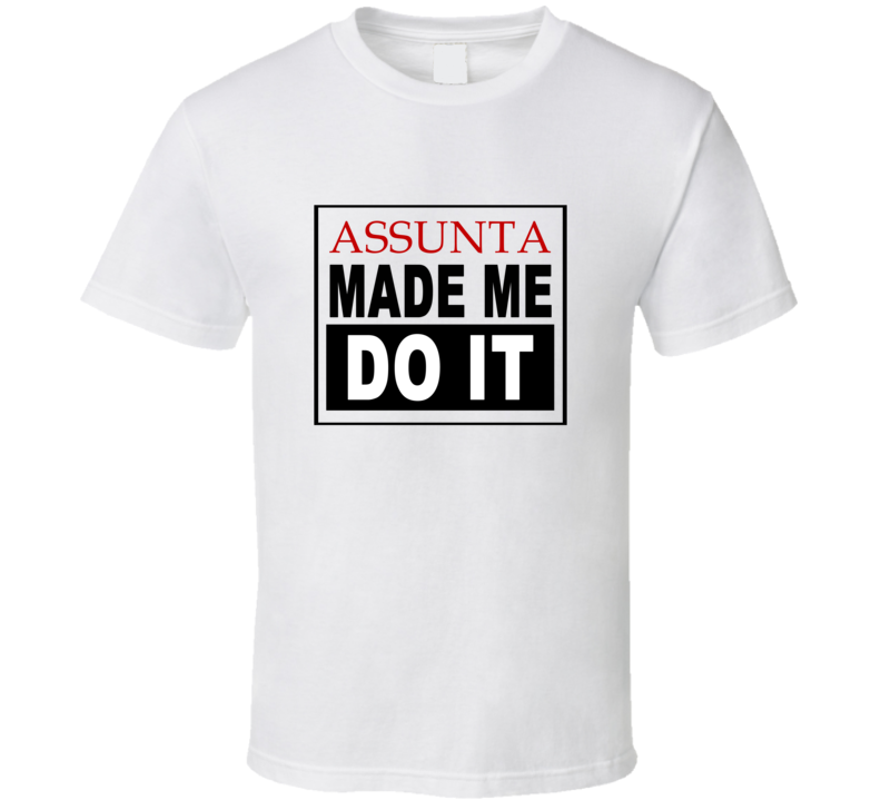 Order your very own Assunta Made Me Do It Cool Retro T Shirt. It won’t be around forever so buy yours here today! Shop our huge selection of high quality, graphic apparel. Each design is offered on a variety of sizes and styles including; t shirts, hoodies, aprons and even baby one-pieces! This product is pre-treated to ensure quality and longevity of the graphic.
