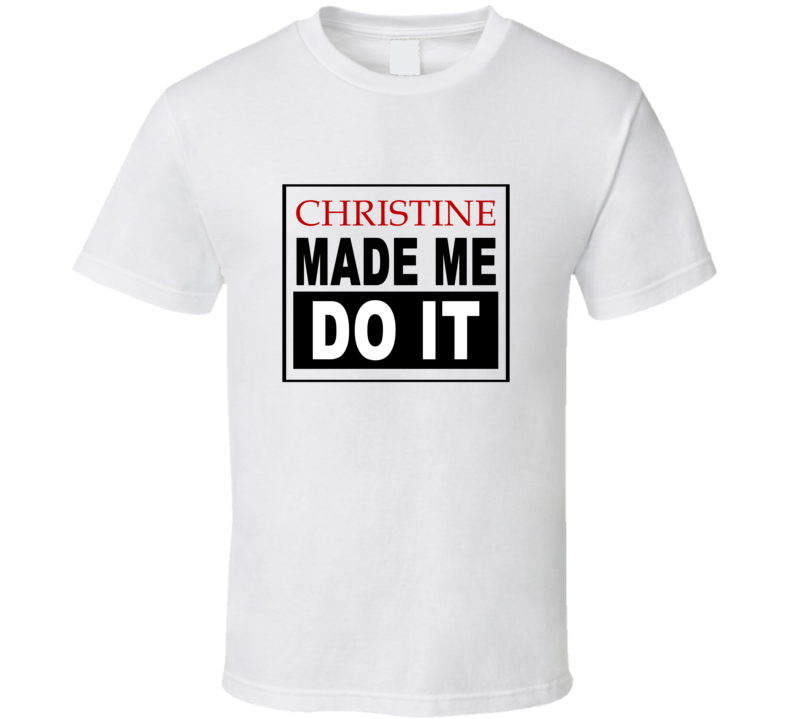 Order your very own Christine Made Me Do It Cool Retro T Shirt. It won’t be around forever so buy yours here today! Shop our huge selection of high quality, graphic apparel. Each design is offered on a variety of sizes and styles including; t shirts, hoodies, aprons and even baby one-pieces! This product is pre-treated to ensure quality and longevity of the graphic.