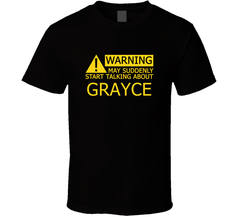 Order your very own Warning May Start Talking About Grayce Funny T Shirt. It won’t be around forever so buy yours here today! Shop our huge selection of high quality, graphic apparel. Each design is offered on a variety of sizes and styles including; t shirts, hoodies, aprons and even baby one-pieces! This product is pre-treated to ensure quality and longevity of the graphic.