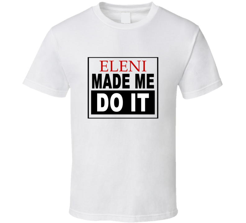 Order your very own Eleni Made Me Do It Cool Retro T Shirt. It won’t be around forever so buy yours here today! Shop our huge selection of high quality, graphic apparel. Each design is offered on a variety of sizes and styles including; t shirts, hoodies, aprons and even baby one-pieces! This product is pre-treated to ensure quality and longevity of the graphic.