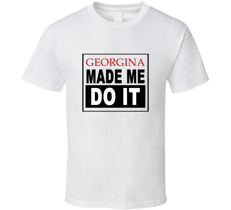 Order your very own Georgina Made Me Do It Cool Retro T Shirt. It won’t be around forever so buy yours here today! Shop our huge selection of high quality, graphic apparel. Each design is offered on a variety of sizes and styles including; t shirts, hoodies, aprons and even baby one-pieces! This product is pre-treated to ensure quality and longevity of the graphic.