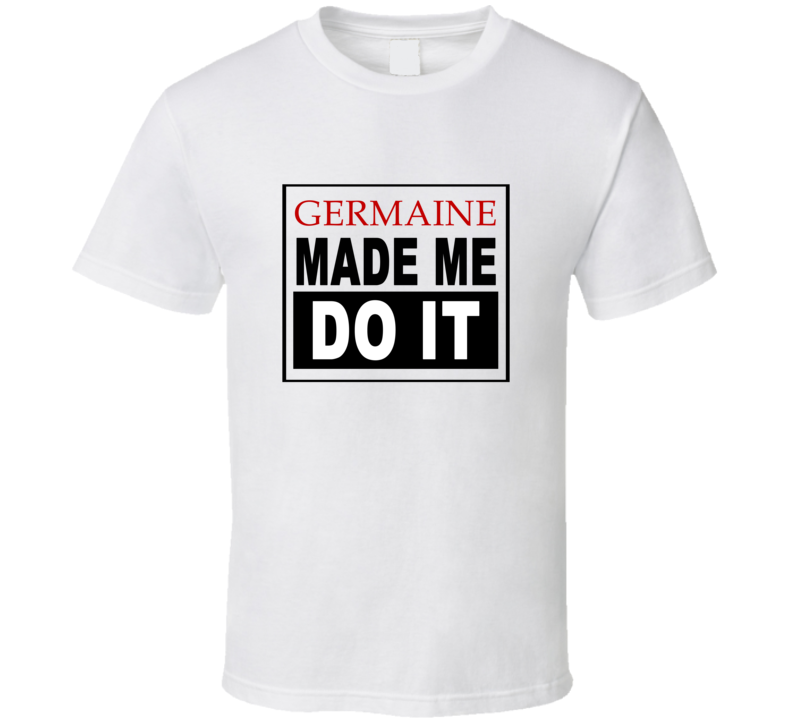 Order your very own Germaine Made Me Do It Cool Retro T Shirt. It won’t be around forever so buy yours here today! Shop our huge selection of high quality, graphic apparel. Each design is offered on a variety of sizes and styles including; t shirts, hoodies, aprons and even baby one-pieces! This product is pre-treated to ensure quality and longevity of the graphic.