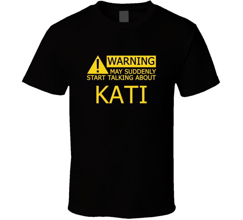 Order your very own Warning May Start Talking About Kati Funny T Shirt. It won’t be around forever so buy yours here today! Shop our huge selection of high quality, graphic apparel. Each design is offered on a variety of sizes and styles including; t shirts, hoodies, aprons and even baby one-pieces! This product is pre-treated to ensure quality and longevity of the graphic.