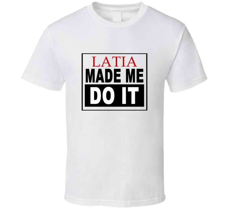 Order your very own Latia Made Me Do It Cool Retro T Shirt. It won’t be around forever so buy yours here today! Shop our huge selection of high quality, graphic apparel. Each design is offered on a variety of sizes and styles including; t shirts, hoodies, aprons and even baby one-pieces! This product is pre-treated to ensure quality and longevity of the graphic.