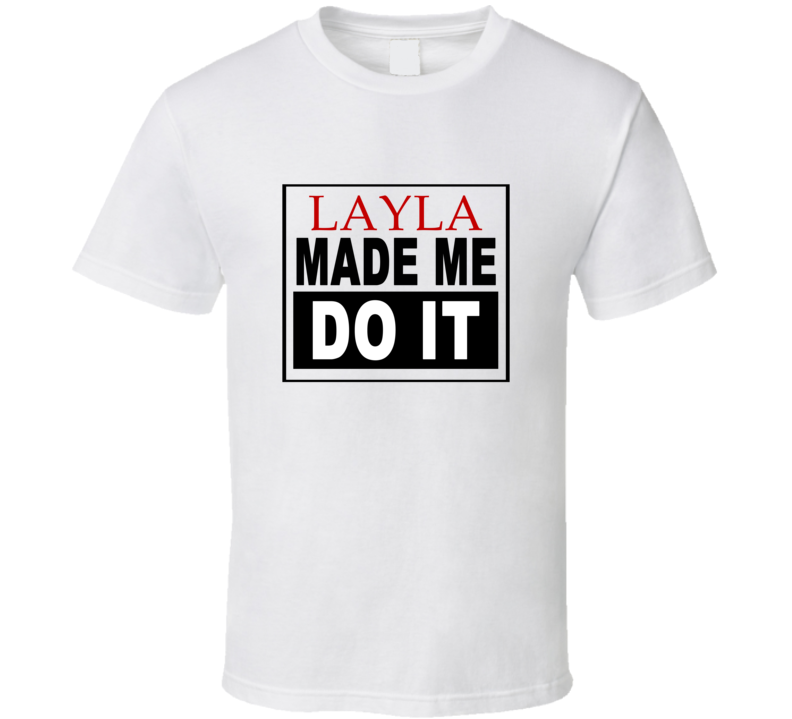 Order your very own Layla Made Me Do It Cool Retro T Shirt. It won’t be around forever so buy yours here today! Shop our huge selection of high quality, graphic apparel. Each design is offered on a variety of sizes and styles including; t shirts, hoodies, aprons and even baby one-pieces! This product is pre-treated to ensure quality and longevity of the graphic.
