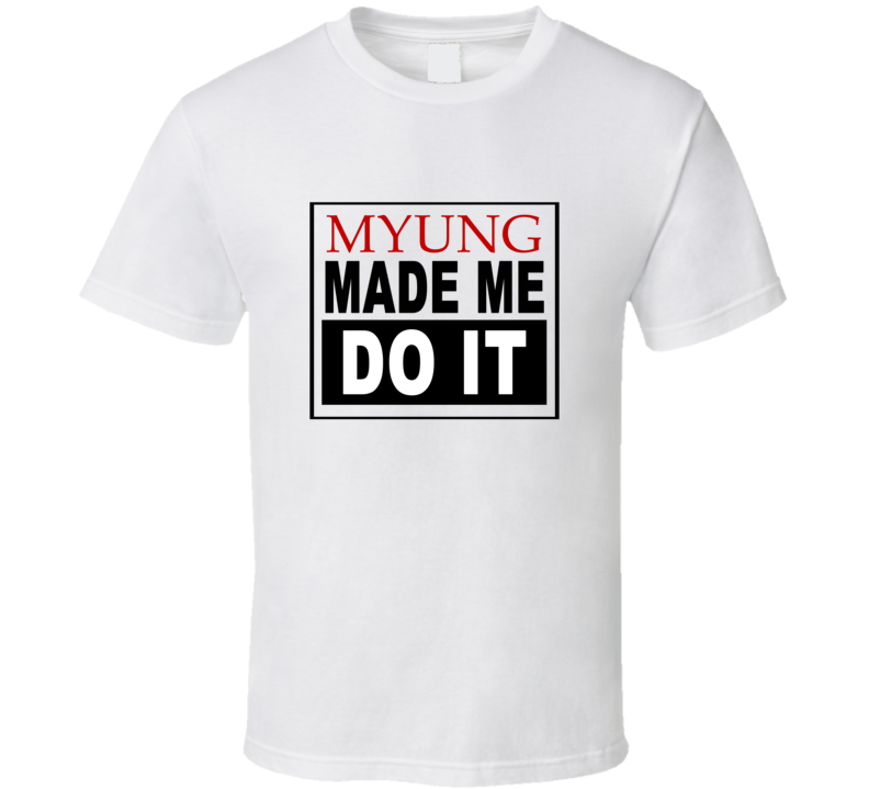 Order your very own Myung Made Me Do It Cool Retro T Shirt. It won’t be around forever so buy yours here today! Shop our huge selection of high quality, graphic apparel. Each design is offered on a variety of sizes and styles including; t shirts, hoodies, aprons and even baby one-pieces! This product is pre-treated to ensure quality and longevity of the graphic.