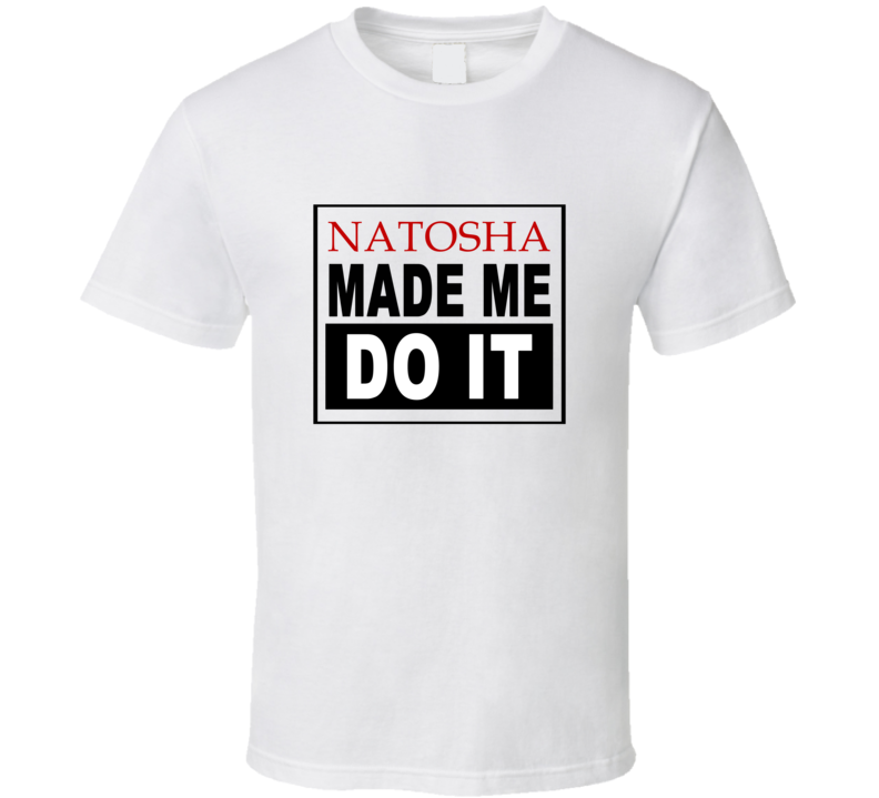 Order your very own Natosha Made Me Do It Cool Retro T Shirt. It won’t be around forever so buy yours here today! Shop our huge selection of high quality, graphic apparel. Each design is offered on a variety of sizes and styles including; t shirts, hoodies, aprons and even baby one-pieces! This product is pre-treated to ensure quality and longevity of the graphic.