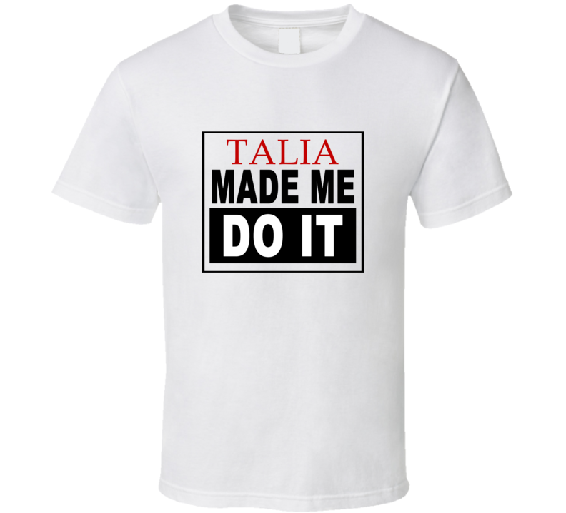 Order your very own Talia Made Me Do It Cool Retro T Shirt. It won’t be around forever so buy yours here today! Shop our huge selection of high quality, graphic apparel. Each design is offered on a variety of sizes and styles including; t shirts, hoodies, aprons and even baby one-pieces! This product is pre-treated to ensure quality and longevity of the graphic.