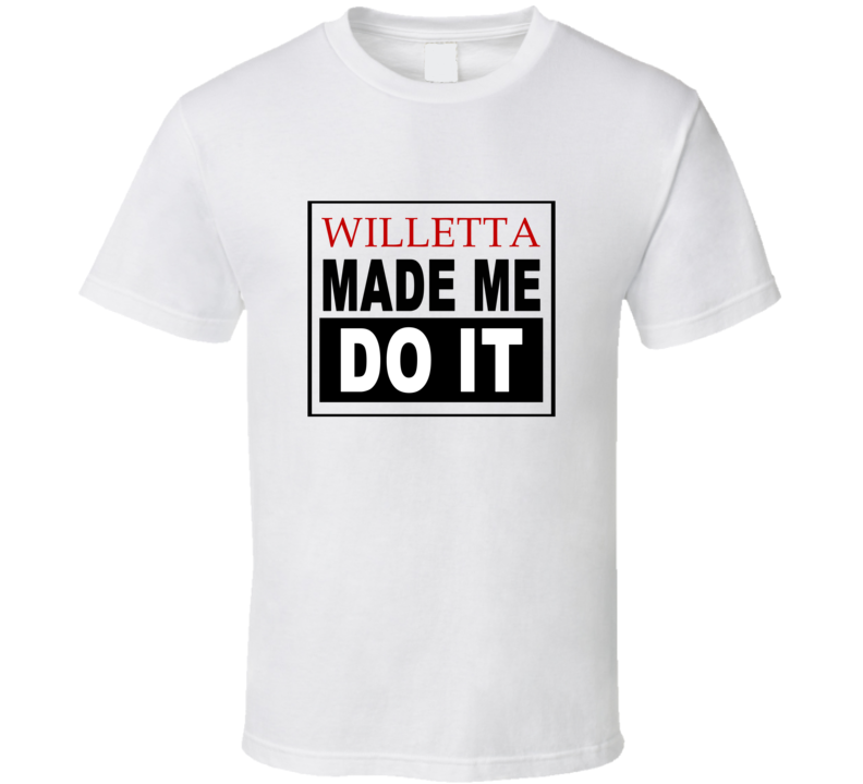 Order your very own Willetta Made Me Do It Cool Retro T Shirt. It won’t be around forever so buy yours here today! Shop our huge selection of high quality, graphic apparel. Each design is offered on a variety of sizes and styles including; t shirts, hoodies, aprons and even baby one-pieces! This product is pre-treated to ensure quality and longevity of the graphic.