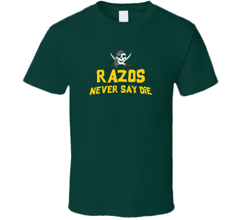 Order your very own The Razo Family Never Say Die The Goonies Movie Tribute T Shirt. It won’t be around forever so buy yours here today! Shop our huge selection of high quality, graphic apparel. Each design is offered on a variety of sizes and styles including; t shirts, hoodies, aprons and even baby one-pieces! This product is pre-treated to ensure quality and longevity of the graphic.