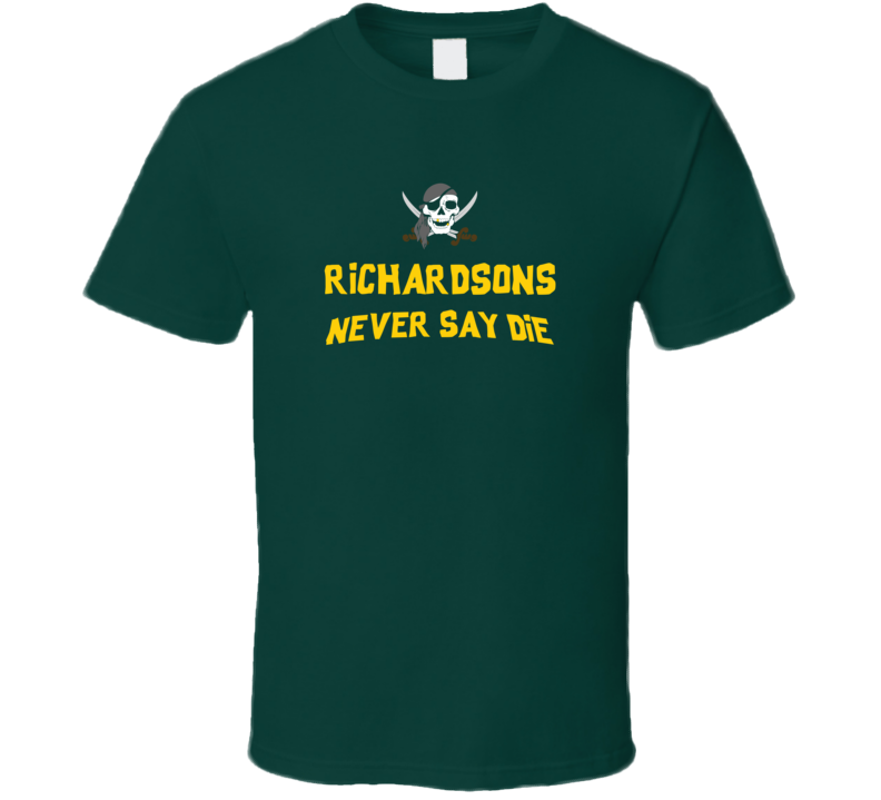 Order your very own The Richardson Family Never Say Die The Goonies Movie Tribute T Shirt. It won’t be around forever so buy yours here today! Shop our huge selection of high quality, graphic apparel. Each design is offered on a variety of sizes and styles including; t shirts, hoodies, aprons and even baby one-pieces! This product is pre-treated to ensure quality and longevity of the graphic.