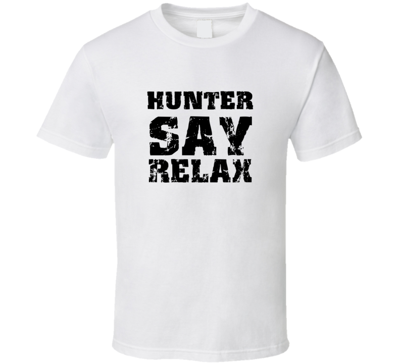 Order your very own Hunter Frankie Say Relax Parody Fathers Day Dad T Shirt. It won’t be around forever so buy yours here today! Shop our huge selection of high quality, graphic apparel. Each design is offered on a variety of sizes and styles including; t shirts, hoodies, aprons and even baby one-pieces! This product is pre-treated to ensure quality and longevity of the graphic.