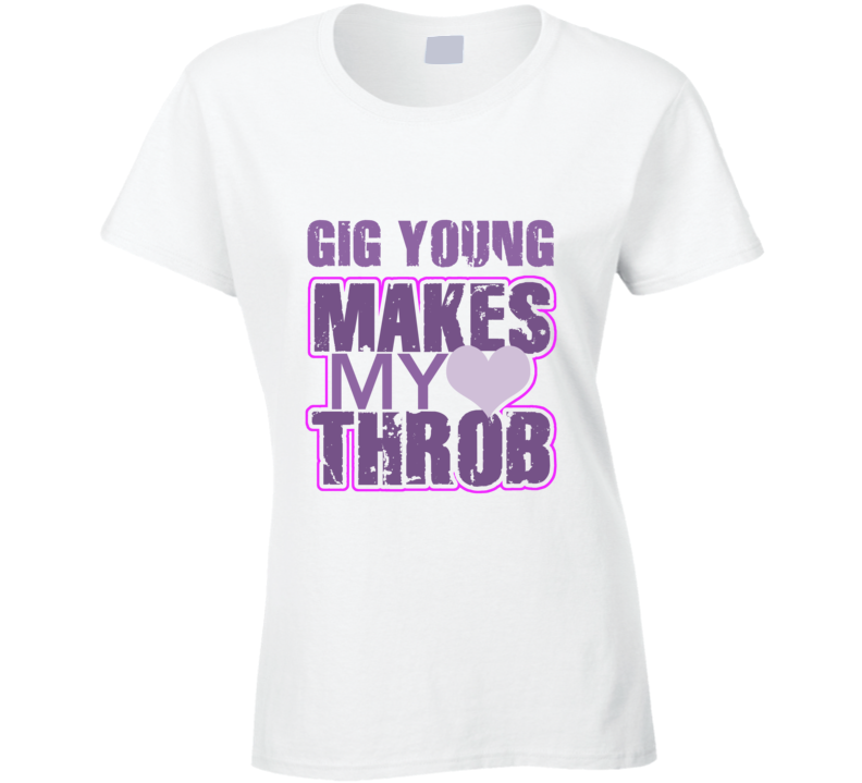 Order your very own Gig Young Makes My Heart Throb Funny Sexy Ladies Trending Fan T Shirt. It won’t be around forever so buy yours here today! Shop our huge selection of high quality, graphic apparel. Each design is offered on a variety of sizes and styles including; t shirts, hoodies, aprons and even baby one-pieces! This product is pre-treated to ensure quality and longevity of the graphic.