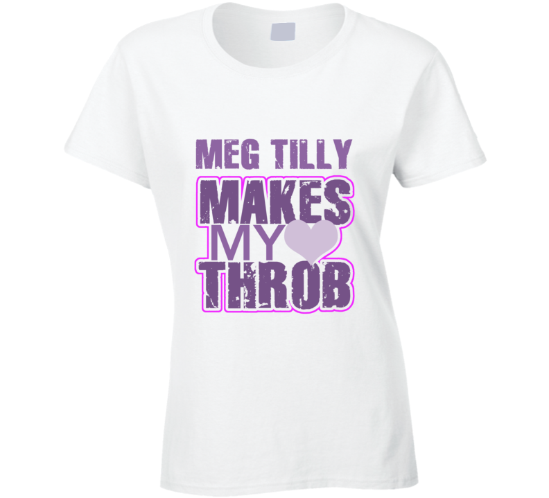 Order your very own Meg Tilly Makes My Heart Throb Funny Sexy Ladies Trending Fan T Shirt. It won’t be around forever so buy yours here today! Shop our huge selection of high quality, graphic apparel. Each design is offered on a variety of sizes and styles including; t shirts, hoodies, aprons and even baby one-pieces! This product is pre-treated to ensure quality and longevity of the graphic.